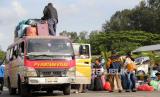 Pemudik dari Kepulauan Riau menunggu jadwal keberangkatan bus di pelataran parkir Terminal Penumpang Pelabuhan Pelindo Dumai, di Kota Dumai, Riau, Selasa (26/12/2023). Pemudik dari Kepulauan Riau yang akan merayakan Tahun Baru 2024 di kampung halamannya dan warga asing yang akan mengisi waktu libur akhir tahun di tanah air mulai berdatangan ke Pelabuhan Dumai yang merupakan tempat transit. (FOTO : ANTARA FOTO/Aswaddy Hamid)