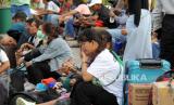 Sejumlah pemudik dari Kepulauan Riau menunggu jadwal keberangkatan bus di pelataran parkir Terminal Penumpang Pelabuhan Pelindo Dumai, di Kota Dumai, Riau, Selasa (26/12/2023). Pemudik dari Kepulauan Riau yang akan merayakan Tahun Baru 2024 di kampung halamannya dan warga asing yang akan mengisi waktu libur akhir tahun di tanah air mulai berdatangan ke Pelabuhan Dumai yang merupakan tempat transit. (FOTO : ANTARA FOTO/Aswaddy Hamid)
