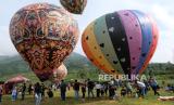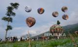 REPUBLIKA.CO.ID, WONOSOBO. -- Penerbangan balon tradisional di Kahyangan Sky View kawasan lereng Bukit Seroja, Desa Maron, Garung Wonosobo, Jawa Tengah , Kamis (28/12/2023).