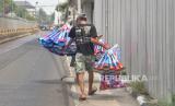 Pengrajin terompet berjalan untuk mengantarkan pesanan pembeli di Jalan Pintu Besar Selatan, Glodok, Jakarta, Jumat (29/12/2023). Menjelang akhir tahun, para pengrajin dan penjual trompet musiman mulai berdatangan dikawasan tersebut. Salah seorang pengrajin terompet asal Cikarang yaitu Sarmat sudah berjualan terompet musiman di tempat itu sejak tahun 80-an. Tahun 2023 ini merupakan tahun pertama dia kembali berjualan, setelah 3 tahun sebelumnya tidak berjualan akibat pandemi COVID-19. Harga terompet berkisar dari Rp 5.000 hingga Rp 15.000 tergantung ukuran. Berbagai pesanan pun sudah diterina mulai dari hotel, cafe, perusahaan hingga perorangan. (FOTO : Republika/Prayogi)