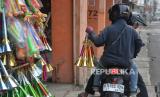 Pengrajin terompet melayani pembeli di Jalan Pintu Besar Selatan, Glodok, Jakarta, Jumat (29/12/2023). Menjelang akhir tahun, para pengrajin dan penjual trompet musiman mulai berdatangan dikawasan tersebut. Salah seorang pengrajin terompet asal Cikarang yaitu Sarmat sudah berjualan terompet musiman di tempat itu sejak tahun 80-an. Tahun 2023 ini merupakan tahun pertama dia kembali berjualan, setelah 3 tahun sebelumnya tidak berjualan akibat pandemi COVID-19. Harga terompet berkisar dari Rp 5.000 hingga Rp 15.000 tergantung ukuran. Berbagai pesanan pun sudah diterina mulai dari hotel, cafe, perusahaan hingga perorangan. (FOTO : Republika/Prayogi)