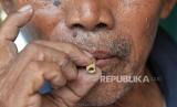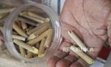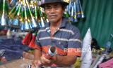 Pengrajin terompet menunjukan peluit bambu yang akan digunakan untuk trompet di Jalan Pintu Besar Selatan, Glodok, Jakarta, Jumat (29/12/2023). Menjelang akhir tahun, para pengrajin dan penjual trompet musiman mulai berdatangan dikawasan tersebut. Salah seorang pengrajin terompet asal Cikarang yaitu Sarmat sudah berjualan terompet musiman di tempat itu sejak tahun 80-an. Tahun 2023 ini merupakan tahun pertama dia kembali berjualan, setelah 3 tahun sebelumnya tidak berjualan akibat pandemi COVID-19. Harga terompet berkisar dari Rp 5.000 hingga Rp 15.000 tergantung ukuran. Berbagai pesanan pun sudah diterina mulai dari hotel, cafe, perusahaan hingga perorangan. (FOTO : Republika/Prayogi)