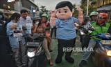 Fanta First Voters membagikan susu kepada warga di Kawasan Sarinah, Jakarta, Jumat (29/12/2023). Kegiatan pembagian susu ini merupakan bagian dari program kampanye pasangan nomor urut 2 yaitu Prabowo-Gibran. (FOTO : Republika/Prayogi)