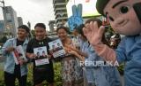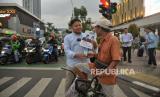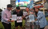 REPUBLIKA.CO.ID, JAKARTA. -- Fanta First Voters membagikan susu kepada warga di Kawasan Sarinah, Jakarta, Jumat (29/12/2023).