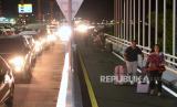REPUBLIKA.CO.ID, BADUNG-- Calon penumpang pesawat berjalan di Jalan Tol Bali Mandara setelah mobil yang ditumpanginya terjebak kemacetan saat akan menuju Bandara Internasional I Gusti Ngurah Rai di Badung, Bali, Jumat (29/12/2023).