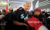 Calon presiden nomor urut 3 Ganjar Pranowo saat menghadiri peluncuran program KTP Sakti di Lapangan Bangsalan, Kecamatan Teras, Kabupaten Boyolali, Jawa Tengah, Sabtu (30/12/2023). (FOTO : Republika/Thoudy Badai)