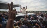 REPUBLIKA.CO.ID, JAKARTA -- Calon presiden nomor urut 2 Prabowo Subianto mengikuti acara Masak Besar bersama youtuber chef Bobon Santoso dan Relawan di Kawasan Cilincing, Jakarta, Jakarta, Sabtu, (30/12/2023).