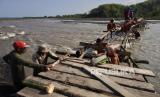 Jembatan swadaya masyarakat sepanjang 100 meter yang digunakan sebagai jalan alternatif antar desa.