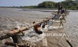 REPUBLIKA.CO.ID, MALANG -- Sejumlah warga memperbaiki jembatan kayu yang rusak di Daerah aliran sungai (DAS) Gunung Semeru, Desa Lebakharjo, Ampelgading, Malang, Jawa Timur, Sabtu (30/12/2023).