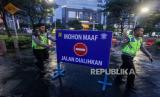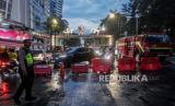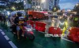 REPUBLIKA.CO.ID, JAKARTA. -- Pengalihan arus lalu lintas di kawasan Sudirman, Jakarta, Ahad (31/12/2023).