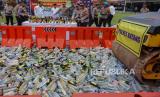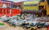 REPUBLIKA.CO.ID, BATANG -- Pemusnahan barang bukti miras di Polres Batang, Jawa Tengah, Ahad (31/12/2023).