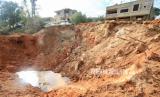 Seorang pria melihat lubang setelah serangan udara Israel yang menargetkan desa KafarKila di perbatasan dengan Israel, di Lebanon selatan, Ahad (31/12/2023). (FOTO : EPA-EFE/STR)