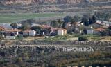 Pemandangan bangunan yang rusak di sisi perbatasan Israel dengan Lebanon menyusul baku tembak melintasi perbatasan seperti yang terlihat dari desa KafarKila, di Lebanon selatan, Ahad (31/12/2023). (FOTO : EPA-EFE/STR)