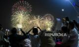 REPUBLIKA.CO.ID, JAKARTA-- Warga menyaksikan pertunjukan kembang api di Pantai Lagoon, Taman Impian Jaya Ancol, Jakarta, Senin (1/1/2024).