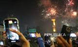 REPUBLIKA.CO.ID, BANDUNG. -- Warga memadati kawasan Jalan Asia Afrika, Kota Bandung, saat malam pergantian tahun baru 2024, Ahad (31/12/2023).
