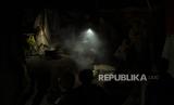 Warga Palestina yang mengungsi akibat pemboman Israel di Jalur Gaza berjalan dalam kegelapan dengan senter di kamp tenda darurat di daerah Muwasi pada Ahad (31/12/2023). (FOTO : AP Photo/Fatima Shbair)