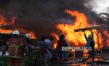 Dinas Pemadam Kebakaran dan Penyelamatan Kota Surabaya mengerahkan 25 unit mobil pemadam kebakaran untuk memadamkan api yang meludeskan 12 petak bangunan, tempat penyimpan palet kayu serta palet plastik, sekaligus tempat pengepulan barang bekas.