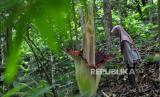 Bunga Amorphophallus atau yang dikenal bunga bangkai tersebut memiliki tinggi 140 cm dan memiliki diameter sebesar 90 cm.