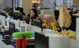 Pekerja beraktivitas di salah satu perkantoran di kawasan Gatot Subroto, Jakarta, Selasa (2/1/2024). Usai libur Natal 2023 dan Tahun Baru 2024, aktivitas perkantoran mulai kembali aktif. Sejumlah pekerja, karyawan dan ASN kembali masuk kantor setelah cuti Tahun Baru 2024. (FOTO : Republika/Thoudy Badai)