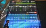 Pekerja berada didekat layar pergerakan Indeks Harga Saham Gabungan (IHSG) usai pembukaan perdagangan Bursa Efek Indonesia (BEI) tahun 2024 di Jakarta, Selasa (2/1/2024). Pada perdagangan perdana di tahun 2024 Indeks Harga Saham Gabungan (IHSG) dibuka mengalami penurunan sebesar 0,14 persen atau 5,4 poin ke level 7.266. (FOTO : Republika/Prayogi)