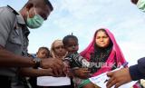 REPUBLIKA.CO.ID, DELI SERDANG -- Petugas Imigrasi Kelas 1 Medan melakukan pendataan bagi pengungsi etnis Rohingnya di Desa Karang Gading, Kecamatan Labuhan Deli, Kabupaten Deli Serdang, Sumatra Utara, Selasa (2/1/2024). Imigrasi Kelas 1 Medan mendata sebanyak 157 pengungsi etnis Rohingya yang terdiri atas 48 anak-anak dan 106 orang dewasa yang terdampar di perairan Desa Karang Gading pada Sabtu (30/12/2023).