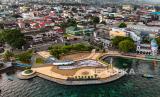 REPUBLIKA.CO.ID, TERNATE -- Foto udara objek wisata Pantai Landmark di Kota Ternate, Maluku Utara, Senin (2/1/2024). Memasuki tahun 2024, Pemerintah Kota Ternate akan membenahi berbagai objek wisata di Ternate salah satunya adalah kawasan Landmark guna meningkatkan kunjungan wisatawan domestik dan mancanegera sehingga mendorong perekonomian masyarakat di daerah itu.