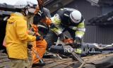 REPUBLIKA.CO.ID, WAJIMA. -- Petugas penyelamat mencari orang hilang di sebuah bangunan yang runtuh di Kota Wajima yang dilanda gempa, Prefektur Ishikawa, Jepang tengah, Rabu (3/1/2024).