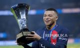 Paris Saint Germain Kylian Mbappe merayakan dengan trofi usai memenangi pertandingan French Supercup Trophee Des Champions antara PSG dan Toulouse di Paris, Kamis (4/1/2024) dini hari WIB (FOTO : EPA-EFE/TERESA SUAREZ)