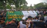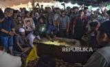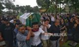 Sejumlah keluarga dan kerabat mengusung keranda berisi jenazah almarhum Mantan Menteri Koordinator (Menko) Bidang Kemaritiman Rizal Ramli untuk dimakamkan di TPU Jeruk Purut, Jakarta, Kamis (4/1/2024). Rizal Ramli dimakamkan satu liang lahad bersama sang istri Herawati yang meninggal dunia pada 2006. Ratusan orang tampak berkumpul untuk mengantar jenazah Rizal Ramli ke peristirahatan terakhirnya. Adapun tokoh yang turut mengiringi Rizal Ramli ke pemakaman, yakni Rocky Gerung, dan Mantan Menteri Agama, Luqman Hakim Saifuddin. (FOTO : Republika/Prayogi)