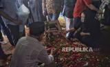 Kerabat berdoa dan menabur bunga di makam almarhum Mantan Menteri Koordinator (Menko) Bidang Kemaritiman Rizal Ramli di TPU Jeruk Purut, Jakarta, Kamis (4/1/2024). Rizal Ramli dimakamkan satu liang lahad bersama sang istri Herawati yang meninggal dunia pada 2006. Ratusan orang tampak berkumpul untuk mengantar jenazah Rizal Ramli ke peristirahatan terakhirnya. Adapun tokoh yang turut mengiringi Rizal Ramli ke pemakaman, yakni Rocky Gerung, dan Mantan Menteri Agama, Luqman Hakim Saifuddin. (FOTO : Republika/Prayogi)