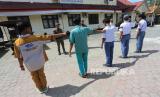 REPUBLIKA.CO.ID, ACEH BARAT -- Personel Satuan Polisi Pamong Praja (Satpol PP) Kabupaten Aceh Barat memberikan pembinaan dan hukuman sebagai efek jera kepada lima siswa yang tertangkap saat razia pelajar bolos sekolah di halaman Kantor Satuan Polisi Pamong Praja dan Wilayatul Hisbah Kabupaten Aceh Barat, Aceh, Kamis (4/1/2024).