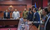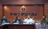 REPUBLIKA.CO.ID, JAKARTA -- Calon presiden nomor urut 2, Prabowo Subianto, bersama Ketua PWI Hendry Ch Bangun dan Wakil Ketua Dewan Pers Muhamad Agung Dharmajaya berada di kantor PWI Pusat di Jakarta, Kamis (4/1/2024). Prabowo Subianto menyampaikan visi dan misinya serta program unggulan kepada pengurus Persatuan Wartawan Indonesia (PWI) Pusat. Prabowo juga menegaskan komitmennya untuk menjamin kebebasan pers.