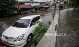 Sebuah mobil yang terjebak banjir di Pondok Karya, Mampang, Jakarta Selatan, Kamis (4/1/2024). Banjir setinggi 80 sentimeter tersebut diakibatkan hujan dengan intensitas tinggi di wilayah Jakarta Selatan hingga membuat aliran air dari Kali Krukut meluap. (FOTO : Republika/Putra M. Akbar)
