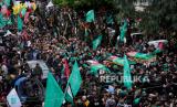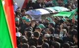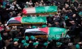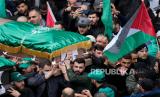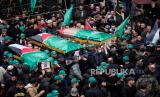 REPUBLIKA.CO.ID, BEIRUT -- Para pelayat membawa peti mati wakil pemimpin Hamas Saleh Al Arouri saat pemakamannya di Beirut, Lebanon, Kamis (4/1/2024). Saleh Al Arouri tewas oleh serangan drone Israel.