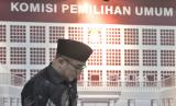 Ketua KPU Hasyim Asyari bersiap memberikan keterangan pers terkait persiapan debat Pemilu 2024 di Gedung KPU, Jakarta, Jumat (5/1/2024). Komisi Pemilihan Umum (KPU) akan menggelar debat ketiga Pilpres 2024 dimana merupakan debat kedua antar capres yang akan digelar di Istora Senayan, Jakarta , Ahad (7/1/2024) malam. Debat tersebut mengangkat tema pertahanan, keamanan, hubungan internasional, globalisasi, geopolitik, dan politik luar negeri. (FOTO : Republika/Prayogi)