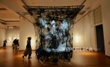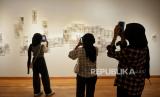 REPUBLIKA.CO.ID, JAKARTA -- Pengunjung mengamati karya di pameran Pascamasa di Galera Nasional, Gambir, Jakarta Pusat, Rabu (6/1/2024). Pameran Pascamasa ini merupakan upaya dalam merespon perkembangan terkini dari wacana kebudayaan yang bertaut pada isu tentang ‘pasca’ yang menjelaskan masalah-masalah era kesudahan, seperti pascaindustrial, pascamodernisme, pascakebenaran, dan lainnya. Penyelenggaraan pameran ini juga sebagai upaya pencatatan rekam pencapaian seni rupa Indonesia. Pameran tersebut berlangsung hingga 21 Januari 2024 mendatang.