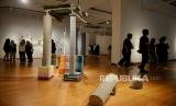 Pengunjung mengamati karya di pameran Pascamasa di Galera Nasional, Gambir, Jakarta Pusat, Rabu (6/1/2024). Pameran Pascamasa ini merupakan upaya dalam merespon perkembangan terkini dari wacana kebudayaan yang bertaut pada isu tentang ‘pasca’ yang menjelaskan masalah-masalah era kesudahan, seperti pascaindustrial, pascamodernisme, pascakebenaran, dan lainnya. Penyelenggaraan pameran ini juga sebagai upaya pencatatan rekam pencapaian seni rupa Indonesia. Pameran tersebut berlangsung hingga 21 Januari 2024 mendatang. (FOTO : Republika/Thoudy Badai)