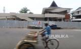 REPUBLIKA.CO.ID, KEDIRI -- Suasana proyek pembangunan Alun-alun Kota Kediri yang mangkrak di Kota Kediri, Jawa Timur, Sabtu (6/1/2024). Proyek senilai Rp17,9 miliar tersebut mangkrak usai pemerintah daerah setempat melalui Dinas Pekerjaan Umum dan Penataan Ruang (PUPR) memutus kontrak PT Surya Graha Utama KSO Sidoarjo selaku pelaksana proyek karena keterlambatan realisasi fisik pembangunan.