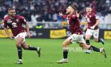 Nikola Vlasic dari Torino bersorak setelah mencetak gol pada pertandingan sepak bola Serie A Italia Torino FC vs SSC Napoli di Stadion Olimpico Grande Torino di Turin, Italia, Ahad (7/1/2024). (FOTO : EPA-EFE/Alessandro Di Marco)