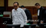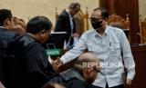 Terdakwa mantan Ditjen Pajak Kementerian Keuangan Rafael Alun Trisambodo bersiap menjalani sidang pembacaan putusan di Pengadilan Negeri Tipikor Jakarta Pusat, Senin (8/1/2024). Majelis Hakim menjatuhkan vonis kepada terdakwa Rafael Alun dengan hukuman 14 tahun penjara, denda Rp500 juta subsider kurungan 3 bulan serta menjatuhkan pidana tambahan berupa uang pengganti sebesar Rp10 miliar karena terbukti bersalah melakukan tindak pidana korupsi menerima gratifikasi dan tindak pidana pencucian uang (TPPU). (FOTO : Republika/Thoudy Badai)