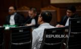 Terdakwa mantan Ditjen Pajak Kementerian Keuangan Rafael Alun Trisambodo saat menjalani sidang pembacaan putusan di Pengadilan Negeri Tipikor Jakarta Pusat, Senin (8/1/2024). Majelis Hakim menjatuhkan vonis kepada terdakwa Rafael Alun dengan hukuman 14 tahun penjara, denda Rp500 juta subsider kurungan 3 bulan serta menjatuhkan pidana tambahan berupa uang pengganti sebesar Rp10 miliar karena terbukti bersalah melakukan tindak pidana korupsi menerima gratifikasi dan tindak pidana pencucian uang (TPPU). (FOTO : Republika/Thoudy Badai)