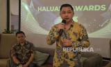 Co Founder HaluApp Andree Wijaya (kiri) menyampaikan paparan didampingi Co Founder HaluApp Marcell Tee (kanan) saat konferensi pers HaluApp Awards 2023 di Jakarta, Senin (8/1/2024). Di bawah naungan PT Wibu Sukses Bersama, HaluApp menyelenggarakan HaluApp Awards 2023 sebagai ajang penghargaan untuk mengapresiasi para cosplayer dan kreator di bidang Anime, Comic, dan Gaming (ACG). Melalui kegiatan ini, HaluApp mengajak masyarakat mengubah persepsi dan melihat potensi cosplayer lewat HaluApp Awards 2023. Dengan total hadiah lebih dari Rp 100.000.000, HaluApp siap mendukung cosplayer menjadi semakin bersinar. (FOTO : Republika/Prayogi)