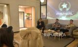 Co Founder HaluApp Andree Wijaya (kiri) dan Marcell Tee (kanan) berbincang dengan cosplayer saat acara konferensi pers HaluApp Awards 2023 di Jakarta, Senin (8/1/2024). Di bawah naungan PT Wibu Sukses Bersama, HaluApp menyelenggarakan HaluApp Awards 2023 sebagai ajang penghargaan untuk mengapresiasi para cosplayer dan kreator di bidang Anime, Comic, dan Gaming (ACG). Melalui kegiatan ini, HaluApp mengajak masyarakat mengubah persepsi dan melihat potensi cosplayer lewat HaluApp Awards 2023. Dengan total hadiah lebih dari Rp 100.000.000, HaluApp siap mendukung cosplayer menjadi semakin bersinar. (FOTO : Republika/Prayogi)