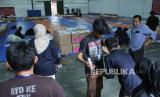 Petugas KPU memeriksa pekerja usai melakukan penyortiran dan pelipatan surat suara Pemilihan Umum (Pemilu) 2024 di Gudang Logistik KPU, Kota Bandung, Jawa Barat, Senin (8/1/2024). Komisi Pemilihan Umum (KPU) Kota Bandung, memulai penyortiran dan pelipatan surat suara Pemilu 2024 dengan melibatkan sebanyak 1.072 orang pekerja yang direkrut dari seluruh kecamatan di Kota Bandung. Penyortiran dan pelipatan surat suara tersebut berlangsung hingga tanggal 18 Januari 2024. (FOTO : Edi Yusuf/Republika)