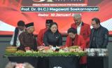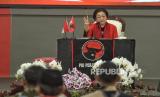 Ketua Umum PDI Perjuangan Megawati Soekarnoputri menyampaikan pidato politik saat perayaan HUT Ke -51 PDI Perjuangan di Sekolah Partai DPP PDIP, Lenteng Agung, Jakarta, Rabu (10/1/2024). Tema yang diusung di HUT ke-51 PDIP yaitu Satyam Eva Jayate, Kebenaran Pasti Menang. (FOTO : Republika/Prayogi)