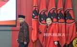 Wakil Presiden Maruf Amin menyampaikan ucapan selamat dalam perayaan HUT Ke -51 PDI Perjuangan di Sekolah Partai DPP PDIP, Lenteng Agung, Jakarta, Rabu (10/1/2024). Tema yang diusung di HUT ke-51 PDIP yaitu Satyam Eva Jayate, Kebenaran Pasti Menang. (FOTO : Republika/Prayogi)