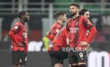 Ekspresi kekecewaan pemain AC Milan setelah dikalahkan Atalanta pada pertandingan sepak bola perempat final Coppa Italia di stadion San Siro, Milan, Rabu (10/1/2024) waktu setempat. Rossoneri takluk 1-2 dari Atalanta. AC Milan sempat unggul lebih dulu lewat kaki Rafael Leao di menit ke-45. Selang dua menit, Atalanta membalas lewat Teun Koopmeiners. Gol kemenangan Atalanta lahir di menit ke-59 yang dicetak Koopmeiners. (FOTO : AP Photo/Luca Bruno)