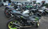 Puluhan sepeda motor dengan knalpot brong hasil razia diparkir di halaman Polrestabes Bandung, Jawa Barat, saat rilis knalpot bising, Kamis (11/1/2024). Di Kota Bandung, penertiban knalpot dilakukan secara serentak mulai 10 Januari hingga 20 Januari 2024. Selain untuk menciptakan rasa nyaman bagi masyarakat, juga untuk menciptakan situasi yang kondusif saat memasuki masa kampanye terbuka. (FOTO : Edi Yusuf/Republika)