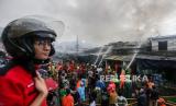 Hujan yang mengguyur tak lantas membuat api cepat mereda. Suasana sekitar lokasi menjadi ramai karena banyak warga tampak berada di tengah jalan sambil berteriak agar warga lainnya yang dekat lokasi menjauh, kebakaran bangunan yang diduga akibat korsleting listrik.