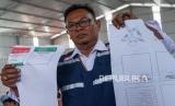REPUBLIKA.CO.ID, PEKALONGAN -- Petugas menunjukkan kertas suara yang rusak di Gudang KPU, Kota Pekalongan, Jawa Tengah, Kamis (11/1/2024).